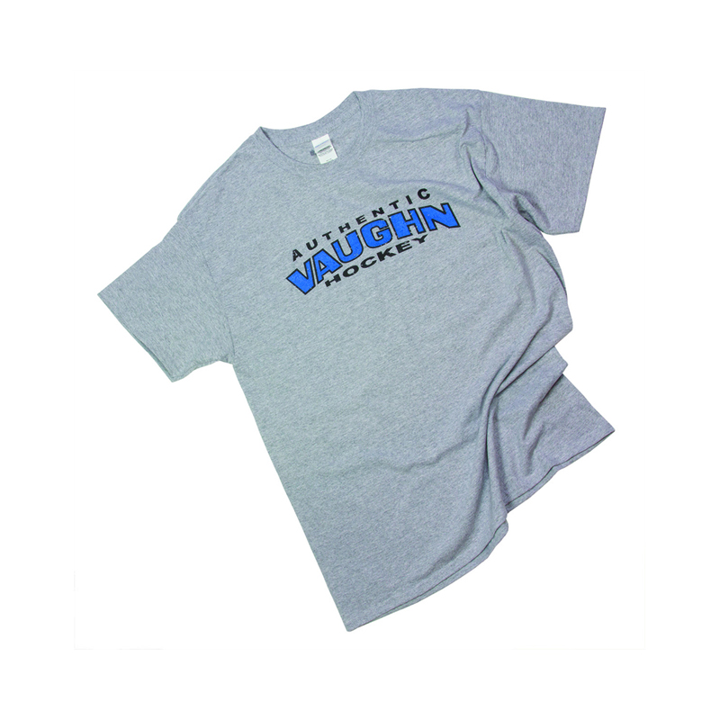 - Athletic gray color with blue and black print