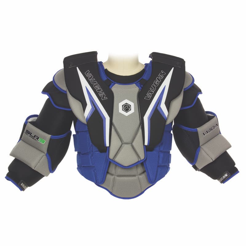 - Chest pad design stays higher on shoulders for increased blocking surface, and extended protection coverage
